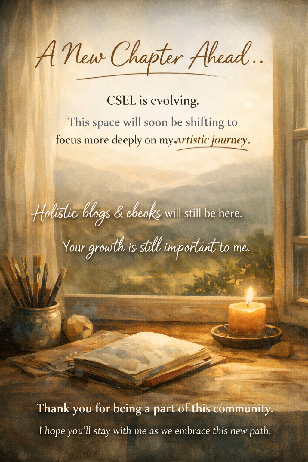 CSEL was built from a real place in me, a place that values healing, reflection, self-awareness, and returning to a more whole and grounded way of being. That foundation is still meaningful to me, and it is not going away.